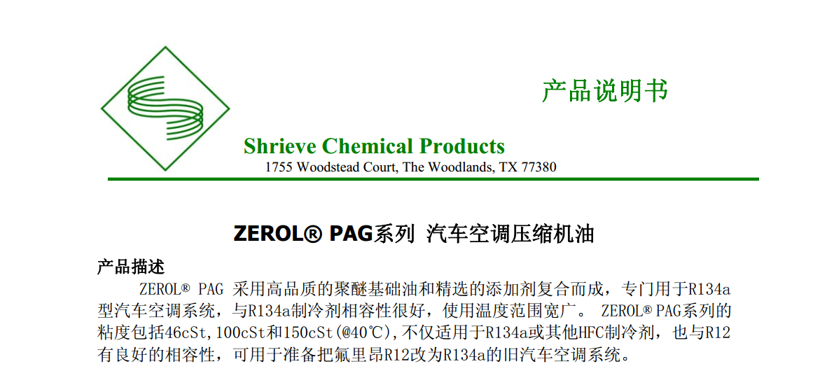 ZEROL? PAG系列 汽車空調壓縮機油