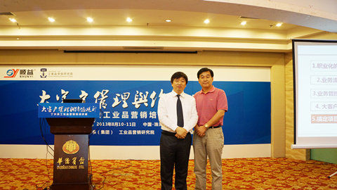 為了提升對工業(yè)品營銷的理解和執(zhí)行能力,珠海經(jīng)濟(jì)特區(qū)順益發(fā)展有限公司特邀請到中國工業(yè)品實(shí)戰(zhàn)營銷創(chuàng)始人、工業(yè)品營銷研究院首席顧問丁興良老師, 并于2013年8月10-11日在珠海市華僑賓館舉辦了一場《大客戶管理和價(jià)值提升》工業(yè)品營銷培訓(xùn)講座,參會(huì)同事共200多位。為期兩天的學(xué)習(xí),丁興良老師運(yùn)用幽默風(fēng)趣,通俗易懂的教學(xué)方式給我們講解了業(yè)務(wù)體系的“天龍八部”,實(shí)戰(zhàn)策略的“七步分析”,還有攻克項(xiàng)目決策人的“七劍下天山”,并與各位同事進(jìn)行了互動(dòng)。