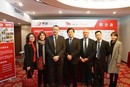 順益體系(集團)總裁張建新、副總裁張海紅、翻譯王安娜與西班牙老鷹總裁 Luis Alberto Brugarolas及夫人、技術(shù)總監(jiān)Leandro Muntada、亞太區(qū)銷售經(jīng)理劉至誠合影