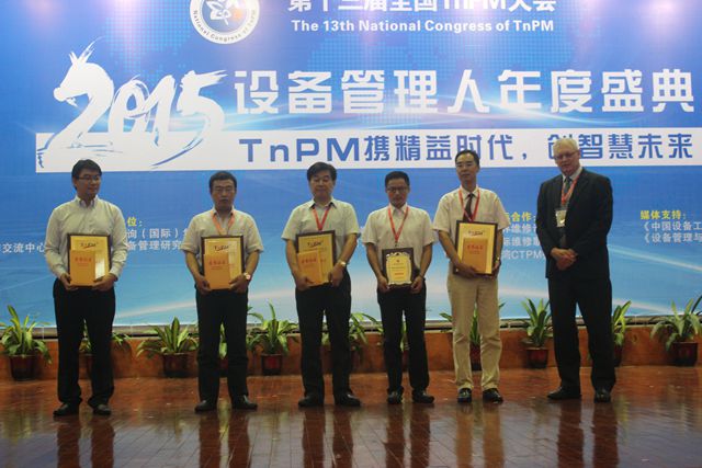 緊隨其后進(jìn)行的是TnPM特別貢獻(xiàn)獎(jiǎng)?lì)C獎(jiǎng)儀式,TnPM的茁壯成長(zhǎng)離不開(kāi)企業(yè)和合作伙伴一直以來(lái)對(duì)于TnPM體系的信賴和支持,因此TnPM特備貢獻(xiàn)獎(jiǎng)?lì)櫭剂x就是為了表彰在設(shè)備管理事業(yè)上和TnPM體系發(fā)展建設(shè)上有特別貢獻(xiàn)的企業(yè)而特別設(shè)立的獎(jiǎng)項(xiàng);珠海經(jīng)濟(jì)特區(qū)順益發(fā)展有限公司、廣東燕京啤酒有限公司、四川煙草工業(yè)有限責(zé)任公司、招金礦業(yè)股份有限公司分別獲得此殊榮。澳洲TPM中心負(fù)責(zé)人,CTPM Australia 總裁 Ross Kennedy先生為獲獎(jiǎng)企業(yè)頒發(fā)獎(jiǎng)牌和證書(shū)。