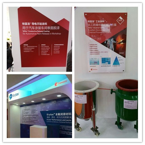 美國(guó)“科慕”盛裝亮相本屆展覽會(huì),展出koytox全氟潤(rùn)滑材料、特富龍導(dǎo)電不粘涂料用于汽車涂裝車間表面脫漆等相關(guān)產(chǎn)品,并現(xiàn)場(chǎng)向大家新型不粘涂料在工業(yè)防腐和橡膠表面處理上的應(yīng)用。