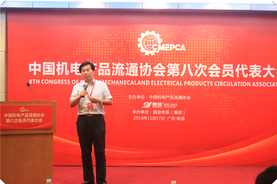 新當選的中國機電產品流通協會第八屆理事會會長張祚嶺發表講話