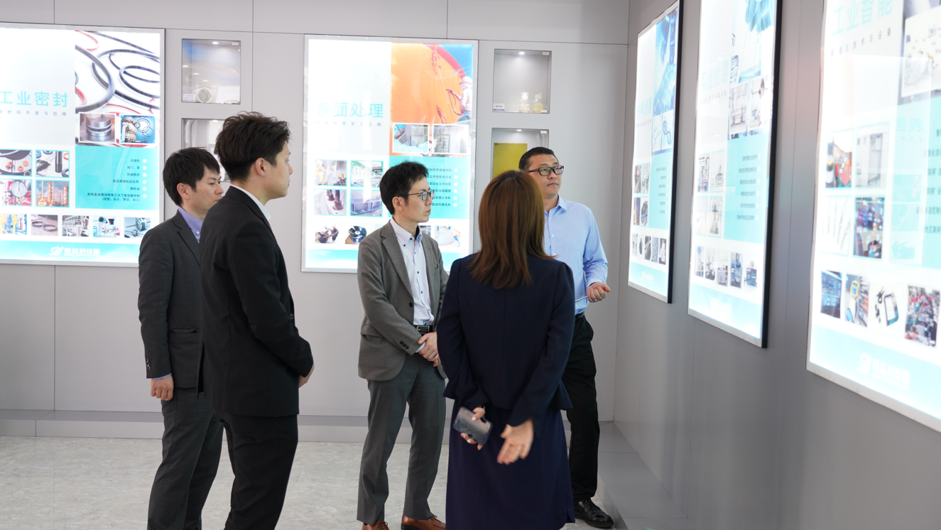 2023年3月7日,引能仕(上海)能源貿(mào)易有限公司田柳總經(jīng)理、松本副總經(jīng)理,引能仕本社冷凍機(jī)油鈴木GM,引能仕中央研究所冷凍機(jī)油開發(fā)水谷主管、川口擔(dān)當(dāng)一行到順益科技園進(jìn)行參觀考察,了解順益新材料新技術(shù)應(yīng)用創(chuàng)新基地的發(fā)展情況。順益體系(集團(tuán))張建新董事長、張海紅副總裁、聶湘副總裁,順益科技園總經(jīng)理龔川等陪同參觀。