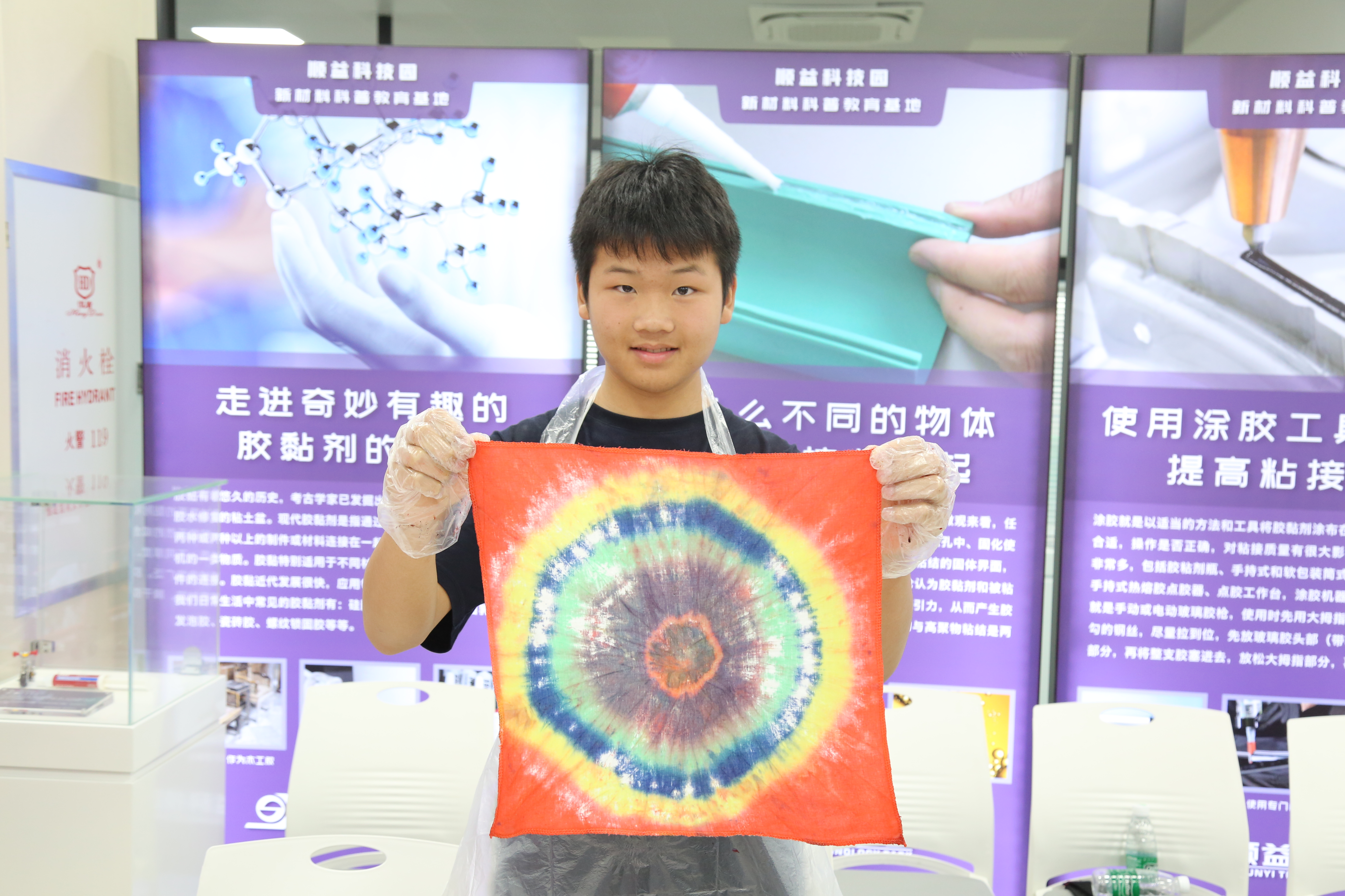 本場活動分別從材料的概念引導青少年走進新材料的奇妙世界,學習材料的發展歷史和最新研究成果,了解新材料在各行各業的廣泛應用。同時參觀珠海第一家以新材料為主題的科普教育基地,看到世界上最輕的固體,新能源汽車的材料應用、管道防腐應用……,活動還進行實踐操作,從探砸不壞的雞蛋、會記憶的金屬小實驗中探索發現隱藏在新材料背后的神奇,體驗和感受新奇有趣的新材料。通過手工扎染體驗感受中國傳統獨特的染色工藝。