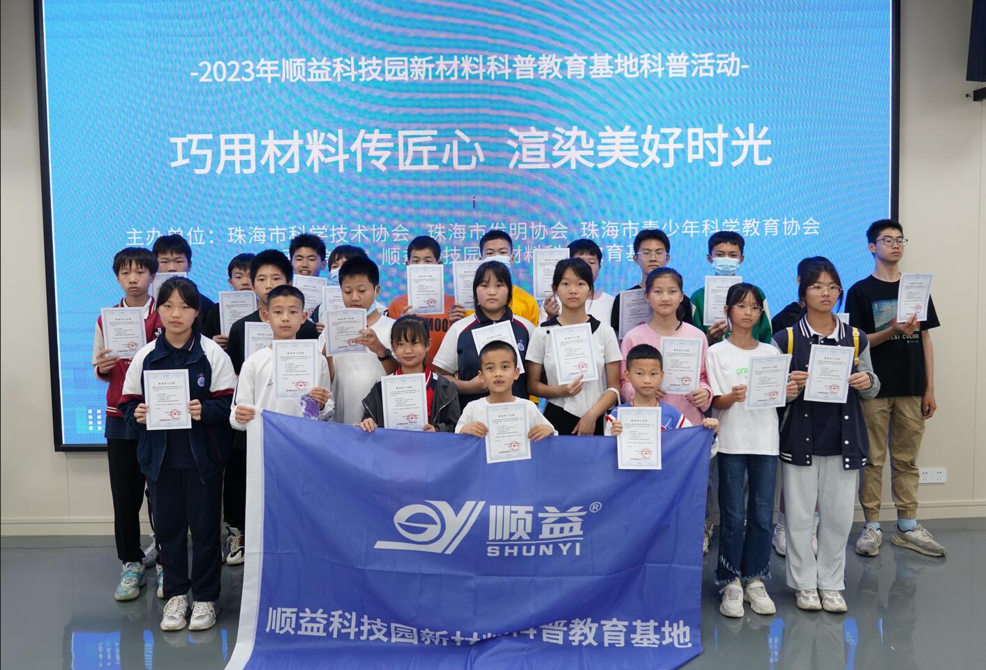 2023年3月25日下午,由珠海市科學技術協會、珠海市發明協會、珠海市青少年科技教育協會主辦,順益科技園新材料科普教育基地承辦的“巧用材料傳匠心 渲染美好時光”新材料科普活動在順益科技園新材料科普教育基地舉行。
