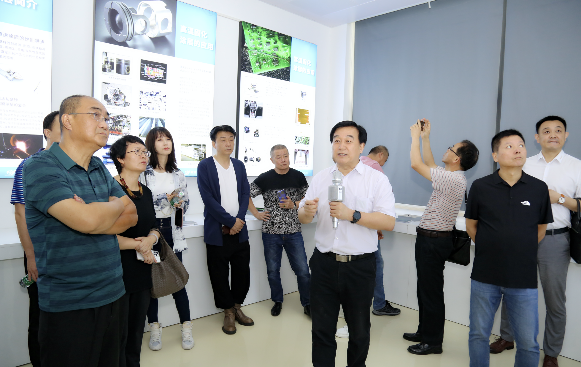 來訪人員先后參觀了順益科技園噴涂實驗中心、新材料應用創新基地建設與成果展、工業集成服務展示體驗中心、德國漢高樂泰體驗中心、Krytox高性能潤滑劑應用展示廳、新能源汽車新材料應用展示廳、高性能彈性體及塑料應用展示廳、特種功能涂層材料應用展示廳及順益科技園新材料科普教育基地等地。參觀人員對順益新材料新技術應用創新基地的發展取得的成績給予了充分肯定。