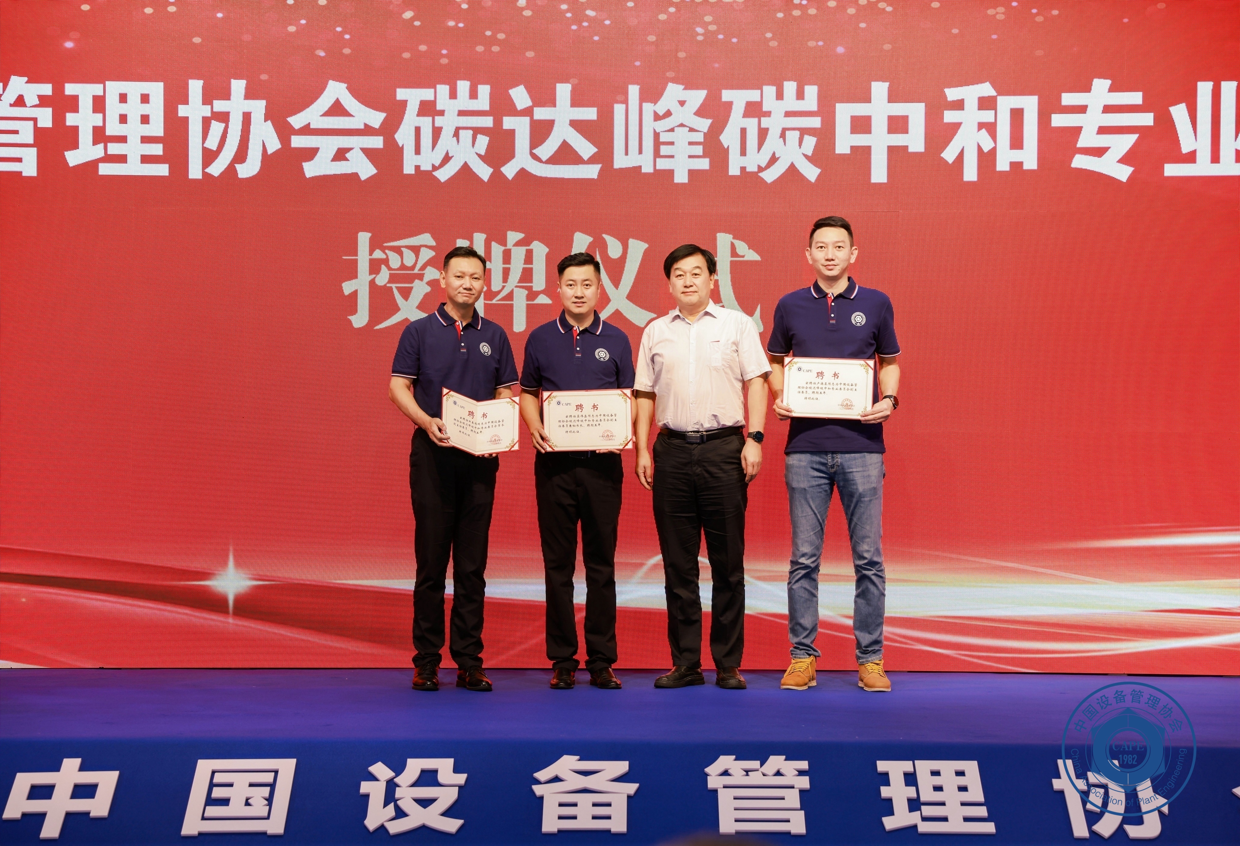 中國設備管理協會副會長、順益體系(集團)董事長張建新受邀出席論壇,作為特邀嘉賓為中國設備管理協會碳達峰碳中和專委會授證書。