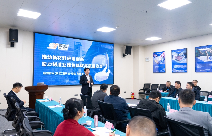 隨后,會議邀請了多位企業知名專家進行專題演講,他們分享了創新思路、經營模式和前沿技術,為與會者帶來了寶貴的啟示和思考。其中,中國機電產品流通協會副會長、順益體系(集團)張建新董事長作《推動新材料應用創新,助力制造業綠色低碳高質量發展》主題演講。他詳細介紹了順益在新材料領域的應用實踐,以及如何助力各行業實現綠色低碳發展,張總的演講得到了與會者的熱烈反響。