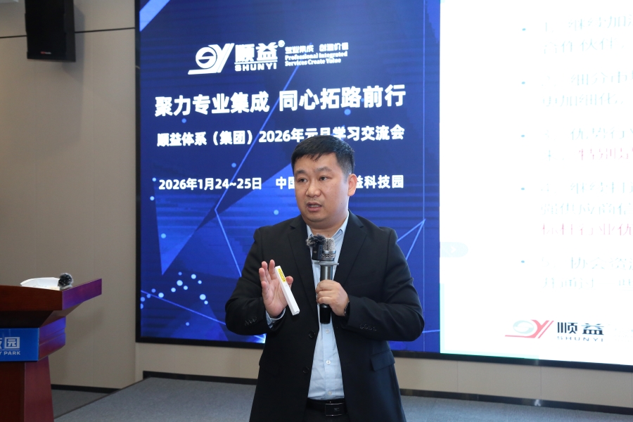 2026年1月24-25日,順益體系(集團)2026年元月學習交流會在順益科技園1號樓7樓多功能會議廳召開!本次會議以“聚力專業集成?同心拓路前行”為主題,匯聚了來自順益體系(集團)總部、全國各分子公司及辦事處的業務精英200余人,共同學習、交流、成長。