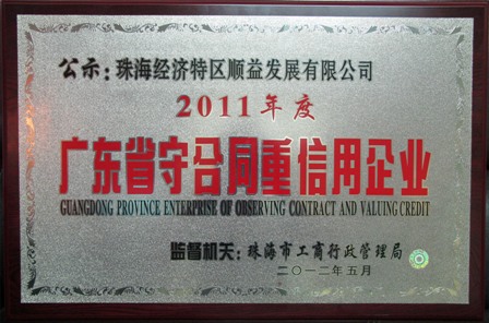 我司一直秉承“誠信至上”的原則,通過有關領導單位考核評審我司于2012年5月被認定為“廣東省守合同重信用企業”,并獲得了由珠海市工商行政管理局頒發的榮譽證書和牌匾。